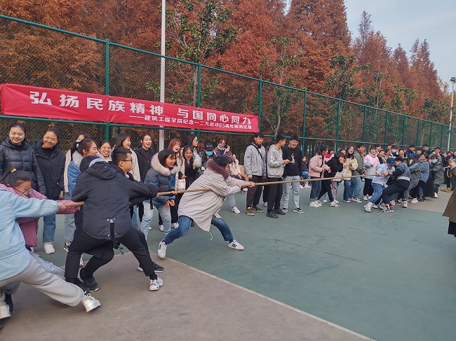 为纪念“一二•九”爱国救亡运动85周年,培养青年学生勇于担当的民族精神,12月6日,9428cn太阳集团在梁园校区排球场举办“弘扬民族精神 与国同心同力”纪念“一二•九”运动85周年拔河比赛。学院党总支副书记张晓春及2020级、2019级全体同学参加活动。