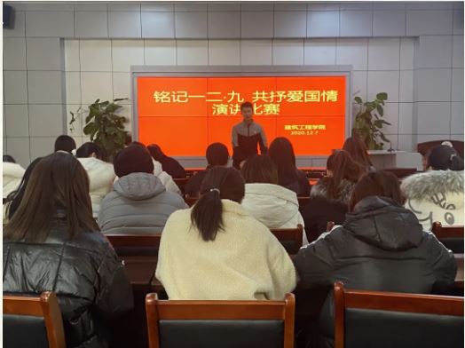 为纪念一二•九运动85周年,激励我院学子不忘历史,传承爱国主义精神。我院于12月7日中午在汉梁楼121室举办“铭记一二•九 共抒爱国情”爱国教育主题演讲比赛,团总支书记韩秋出席,各年级学生代表参加本次活动。